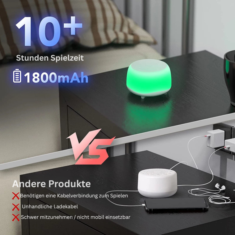 Absolut! Mit ihrem kompakten, leichten Design passt die DreamNoise perfekt in jede Tasche oder jeden Koffer – ideal für Hotelzimmer, Besuche bei Familie oder auch fürs Büro.