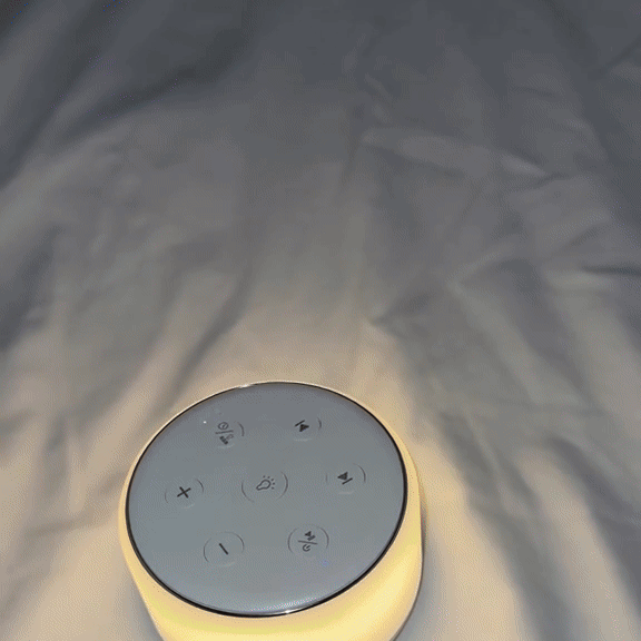 DreamNoise schafft mit 34 beruhigenden Klängen und sanftem Licht eine Atmosphäre, in der du dich sofort entspannst – und erholsam tief schläfst.