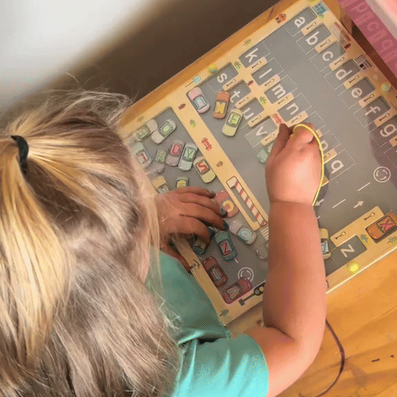 Kinder entdecken Buchstaben auf eine interaktive, kreative Weise, während sie Konzentration, Feinmotorik und logisches Denken ganz nebenbei trainieren.